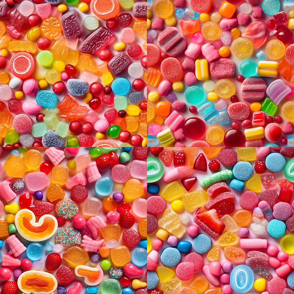 /imagine: mix of candies, sweets, gummies, glitter photo –tile