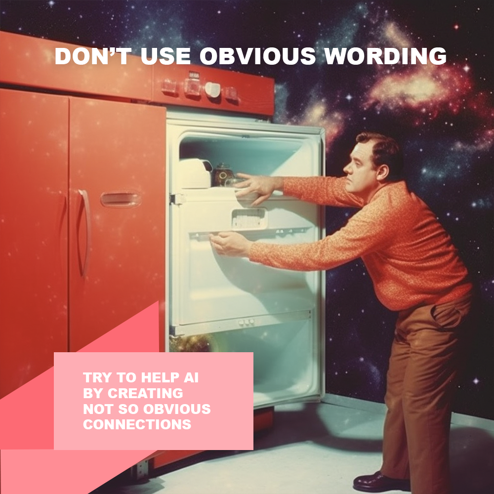 1. Staraj się nie używać oczywistych sformułowań. Pomóż sztucznej inteligencji, tworząc bardziej oryginalne połączenia.